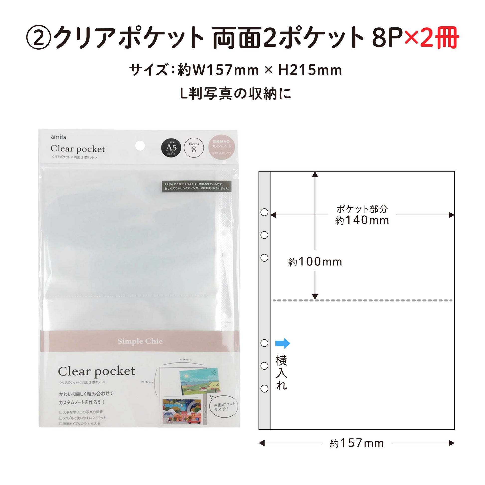 ②クリアポケット 両面2ポケット 8P ×2冊