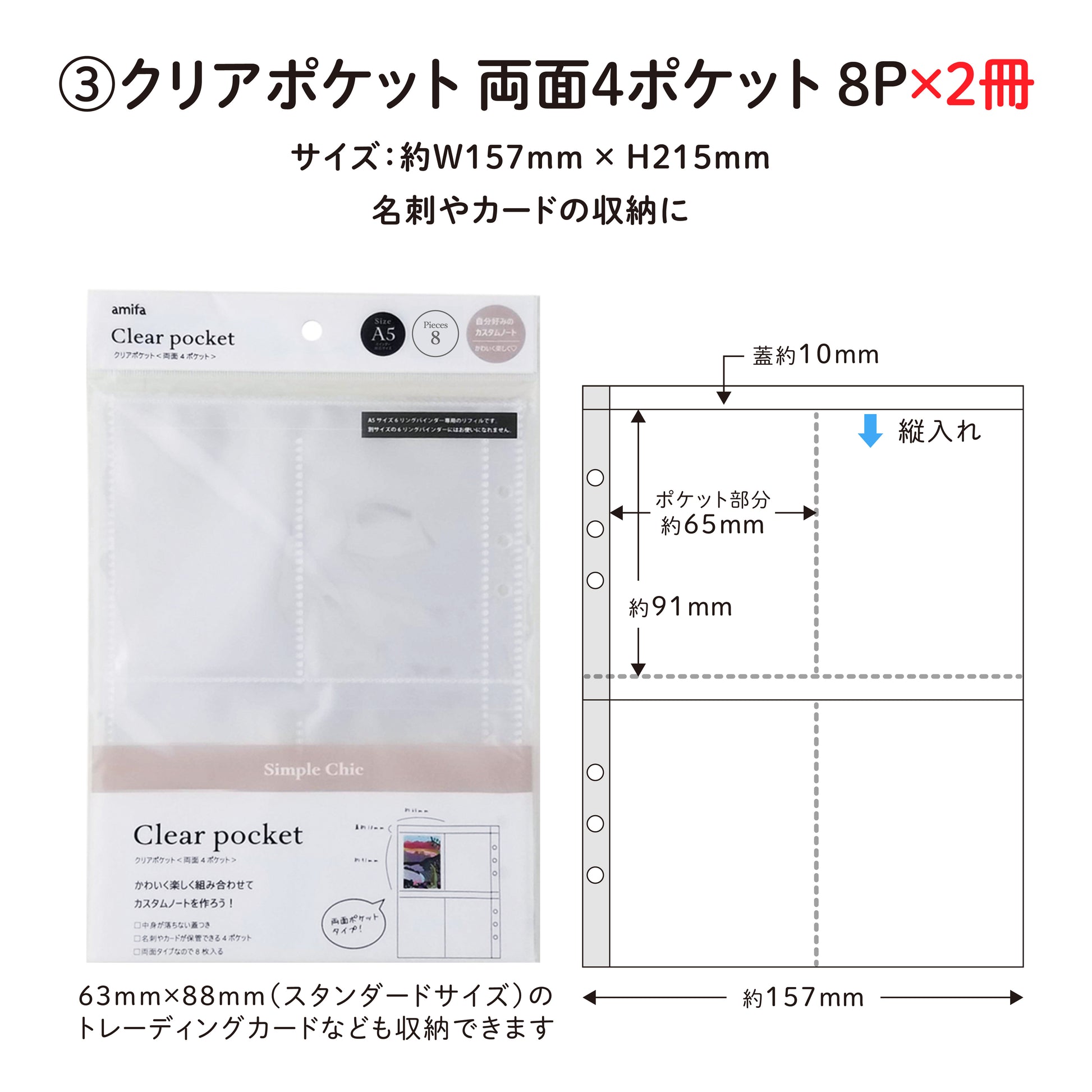 ③クリアポケット 両面4ポケット 8P ×2冊
