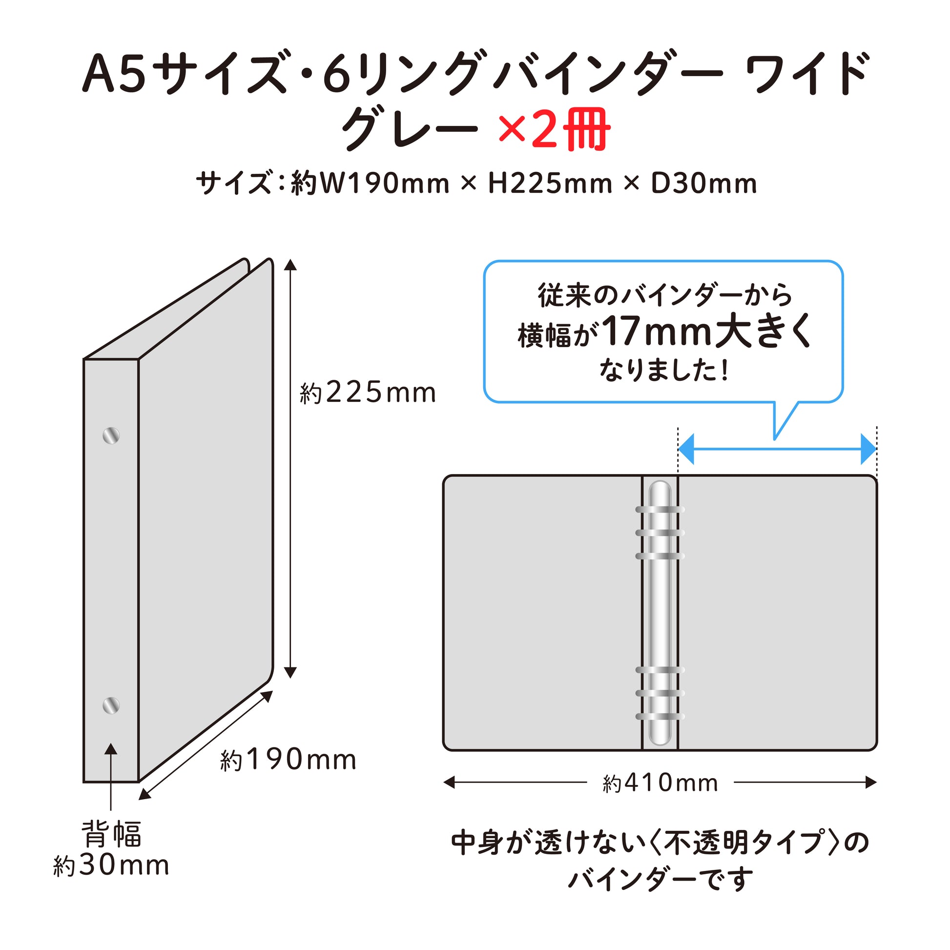 ●A5サイズ ・ 6リングバインダー ワイド ×2冊